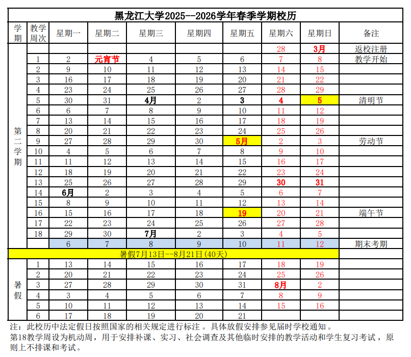 按照学校校历安排,2026年2月28日(周六)、3月1日(周日)为学生返校注册时间;3月2日(周一)正式上课,全体教师要严格遵照校历及作息时间开展教学活动,确保教学工作有序开展。