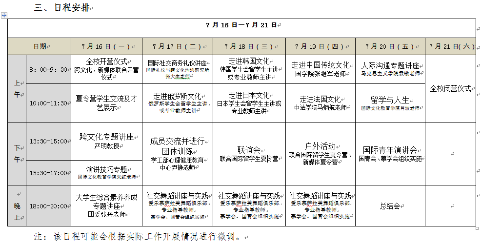 根据学校发布的《关于举办黑龙江大学2018年暑期夏令营的通知》的相关精神,教务处拟面向全校同学举办“跨文化学习与交流夏令营”,以下简称“跨文化夏令营”,现将具体安排通知如下: