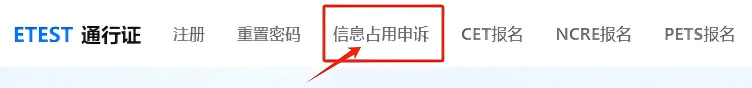 https://passport.neea.edu.cn)用户注册及手机验证,以免耽误报名。如考生发现个人信息(身份证号、手机号等)被占用的情况,点击下图中的“信息占用申诉”,务必尽早完成手持证件照上传核验工作。